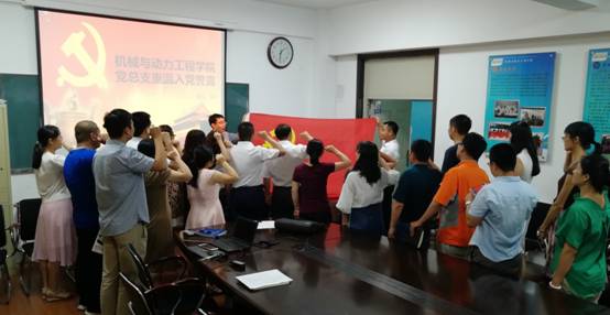 活动由学院党总支书记赵希波领誓,党员们面对党旗,举起右手,重温自己对党忠诚的誓言,再树入党时的决心。