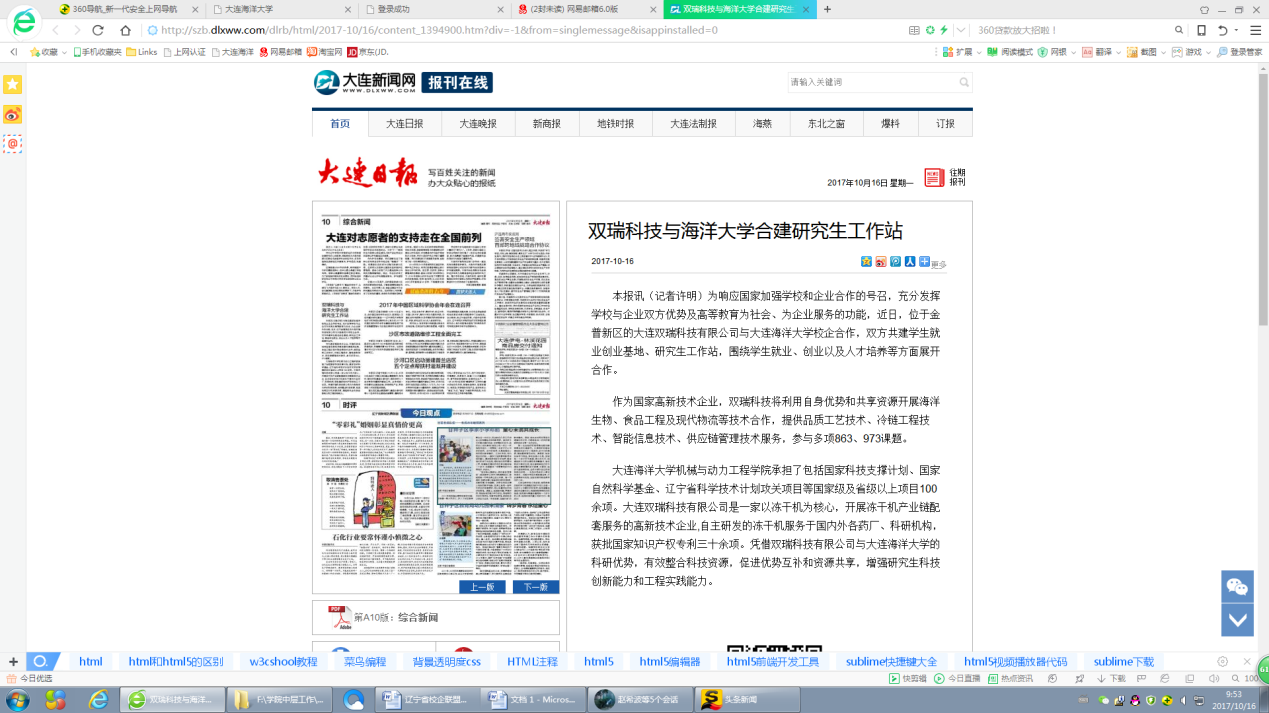 10月16日,《大连日报》对我校澳洲彩票(中国)官方网站 在该企业建立研究生工作站事宜进行了相关报道。