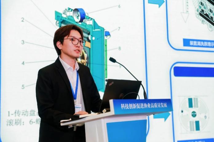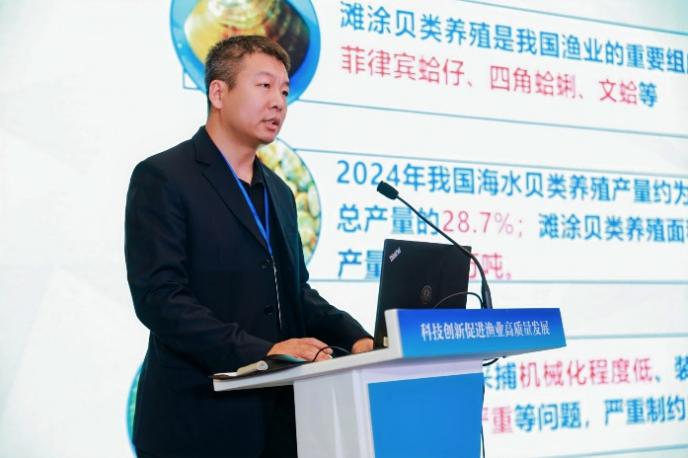 在学术交流环节,我院共有四项研究成果经大会遴选参与汇报。正高级实验师母刚作了题为《滩涂埋栖贝类生态采收装备技术研究与应用》的报告;硕士研究生薛清松、马天明、符芷瑄分别就《机液耦合网箱清洗装置设计及试验》《菲律宾蛤仔苗离散元仿真参数标定与播苗试验》《养殖网笼清洗装置设计与试验研究》进行学术分享,充分展现了我院在现代渔业装备领域的科研实力与创新成果。